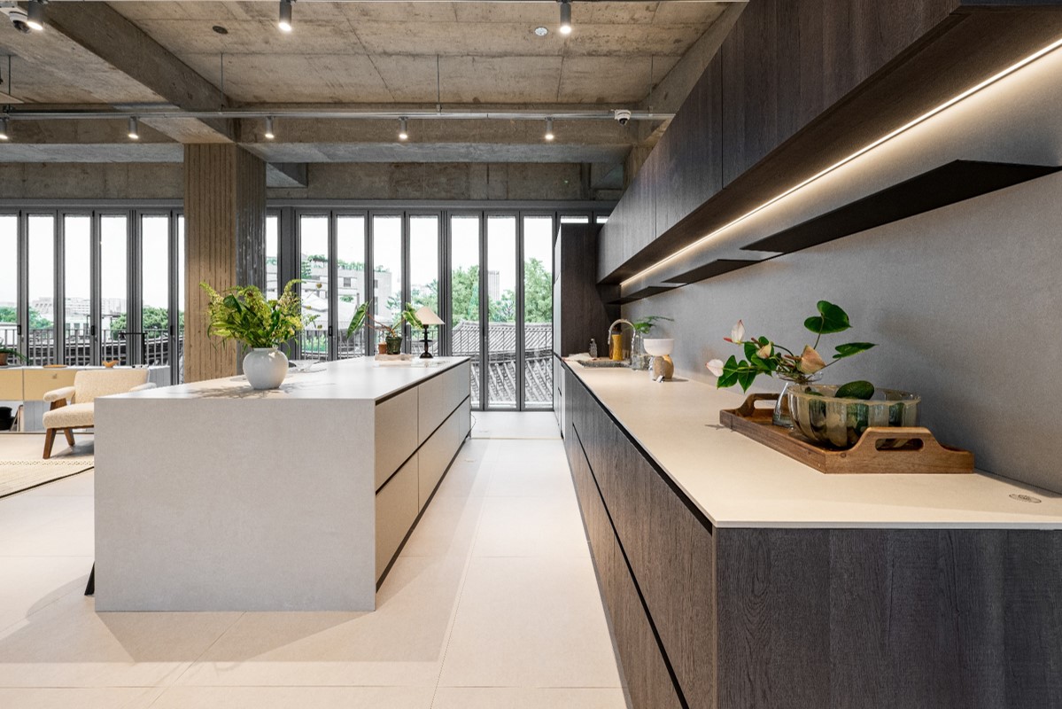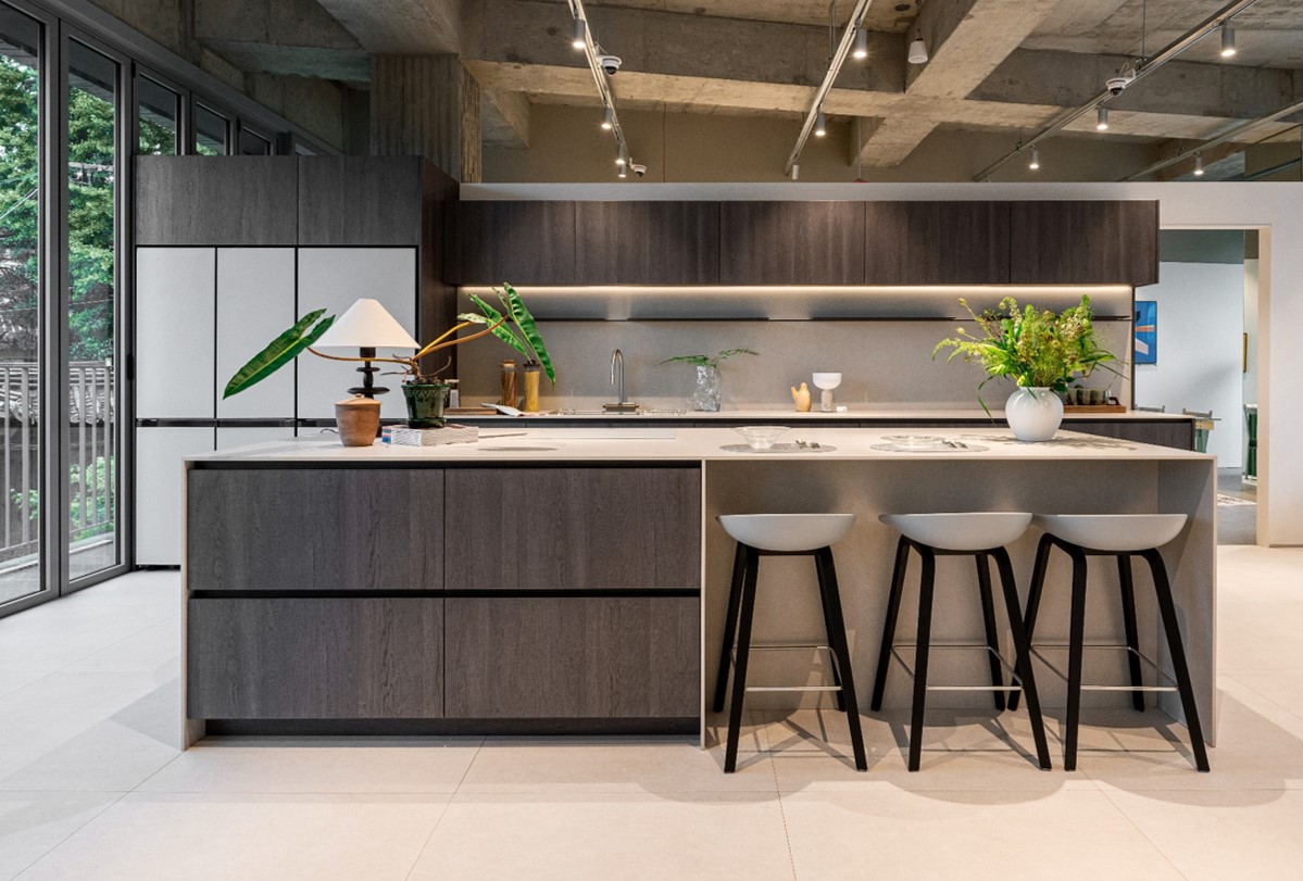오늘의집 오리지널 가구 브랜드와 셀렉트샵 제품들로 구현한 주거 공간 쇼룸입니다. 특히 이곳 주방은 협업을 통해 ‘오늘의집 키친’이라는 이름으로 가구와 상판 모두 LX Z:IN의 프리미엄 자재들로 구현되어 있습니다.