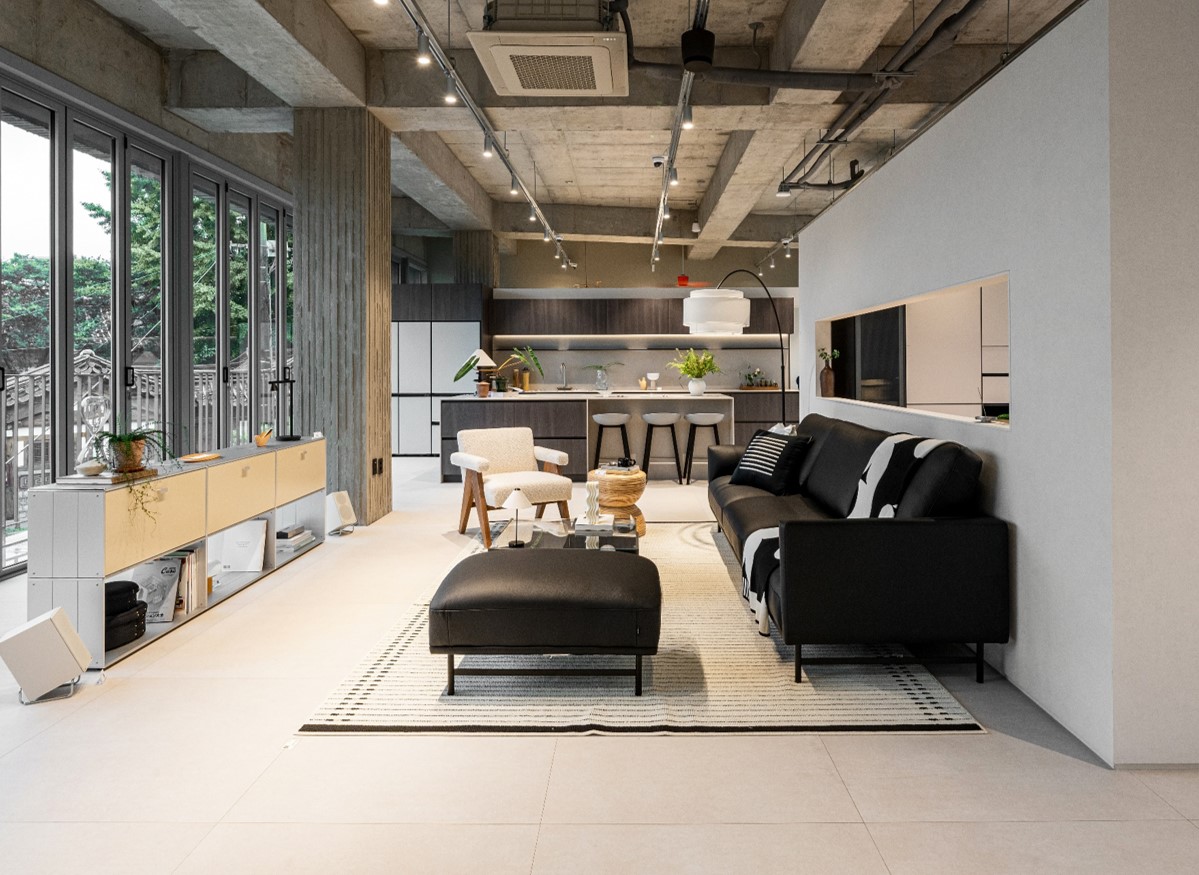 짙은 우드와 스톤이 만나 고급스러운 쇼룸, 라운지B