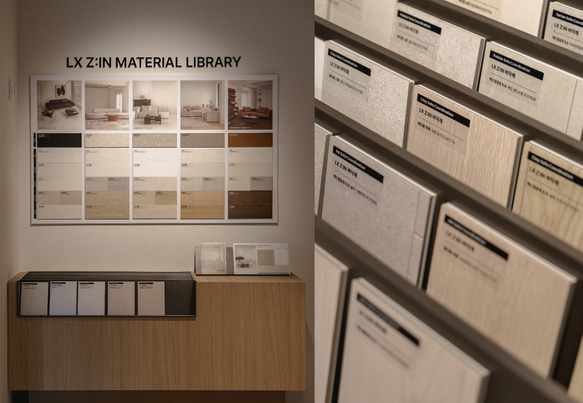 LX Z:IN 자재와 무브먼트랩 가구 샘플 매칭 테이블과 함께 3D 시뮬레이션을 통해 상담을 받을 수 있는 공간도 별도 마련되어 있습니다.