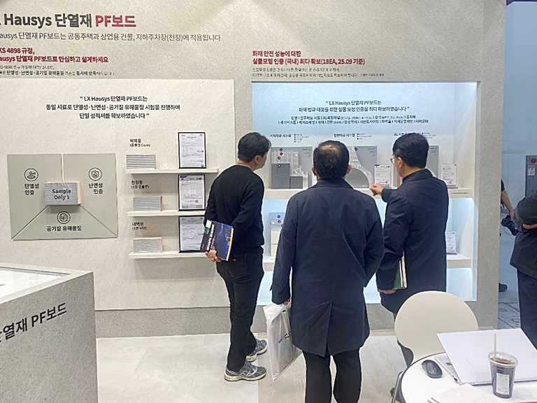 이번 LX하우시스 전시 부스는 ‘단열재 전시존’과 ‘에디톤 전시존’으로 구성됐으며, 특히 ‘LX하우시스 단열재 PF보드’는 국내 건축용 유기 단열재 중 최고 수준의 단열 성능과 환경성적표지(EPD)·저탄소제품 인증 등을 확보한 제품으로 인기를 끌었습니다.